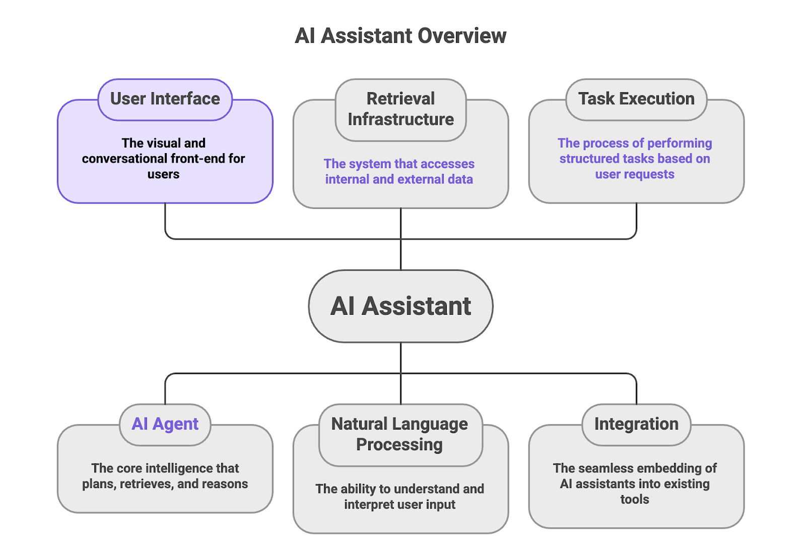 In this architecture, the AI assistant functions as the critical interaction layer between the user and a complex retrieval infrastructure. The retrieval infrastructure includes both internal knowledge bases and the public web. Because they simplify complex data tasks, AI assistants are now deeply embedded in analytics platforms, enterprise software, developer environments, and custom internal tools.