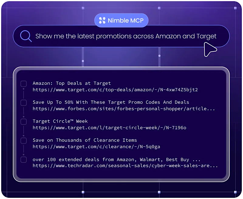 Book a Nimble demo to see how its AI Search API connects production AI agents directly to the live web with structured, inference-ready data.