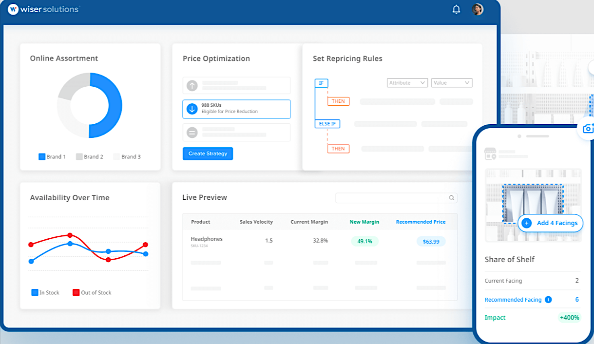 Wiser Solutions aims to bridge the gap between online pricing and physical retail execution. Unlike many tools focused solely on web data, Wiser integrates in-store audits with real-time digital shelf analytics, helping brands maintain price parity across marketplaces, webshops, and brick-and-mortar locations.