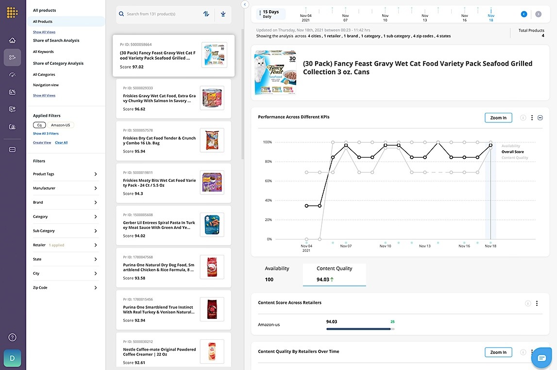 DataWeave specializes in AI-powered insights that aim to connect pricing to digital shelf performance. It enables teams to monitor things like content quality and stock status across hundreds of digital touchpoints, including mobile apps and marketplaces.