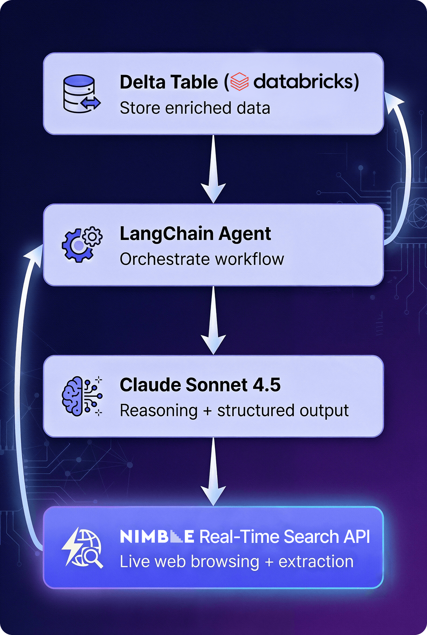 Building a Company Enrichment Agent with Nimble, Databricks, LangChain, and Claude Sonnet