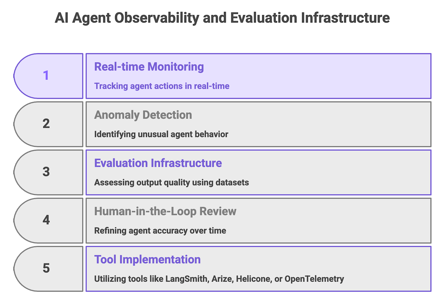 - Implementation of tools like LangSmith, Arize, Helicone, or OpenTelemetry.