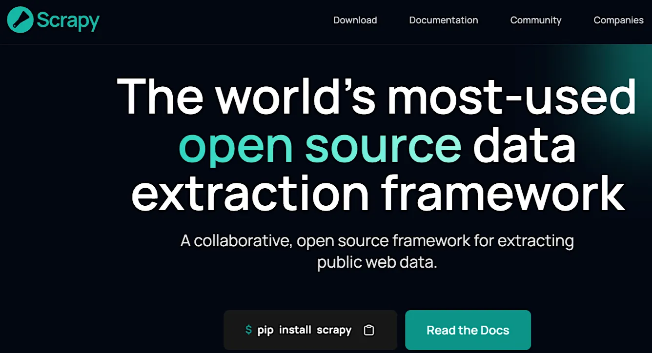Scrapy is an open-source Python framework for building fast, scalable crawlers. It runs asynchronously on Twisted and supports distributed workloads for handling large-scale extraction. A modular design makes it easy to extend and adapt for complex crawling projects.