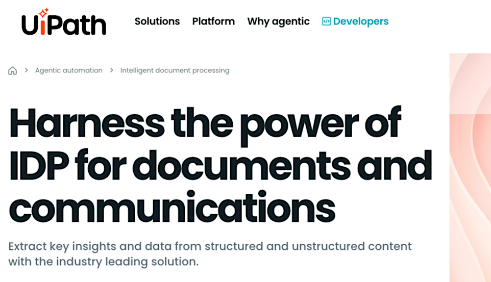 UiPath combines robotic process automation (RPA) and AI to automate document-heavy workflows. It classifies and extracts information from a wide range of documents, then connects to RPA systems for process automation at scale.