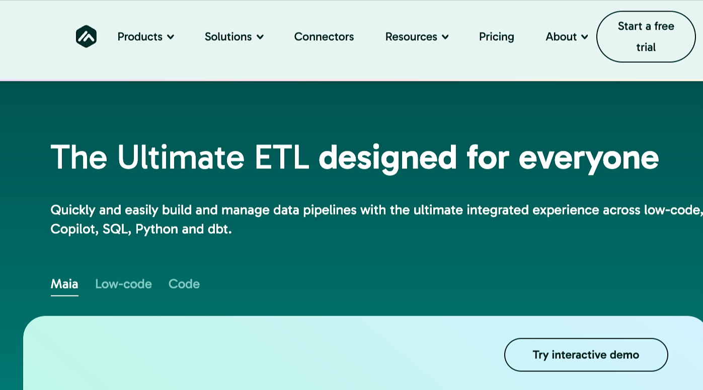 - Native connectors for major data warehouses and SaaS platforms.