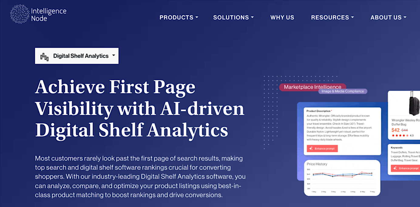 Intelligence Node specializes in real-time pricing and competitive benchmarking. This tool uses advanced AI to track global market movements with high accuracy. It is ideal for brands in price-sensitive categories that need to automate their MAP monitoring and price adjustments.