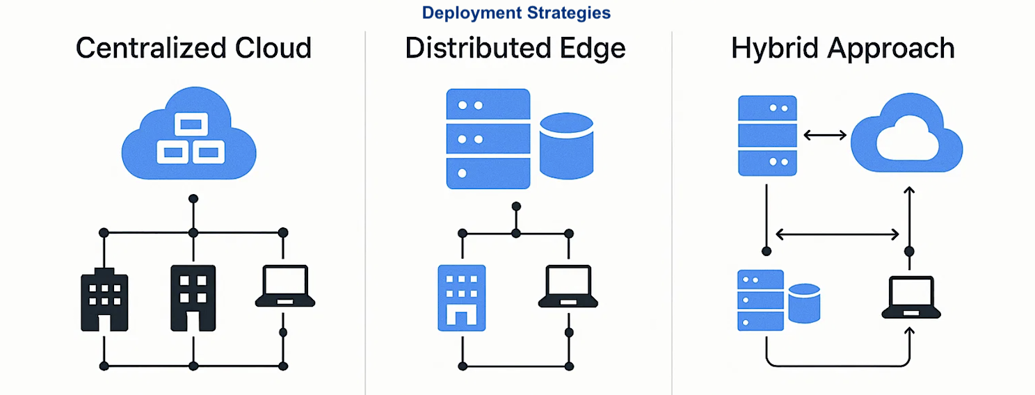 - Centralized Cloud: Offers elastic scaling and managed services but introduces network latency.