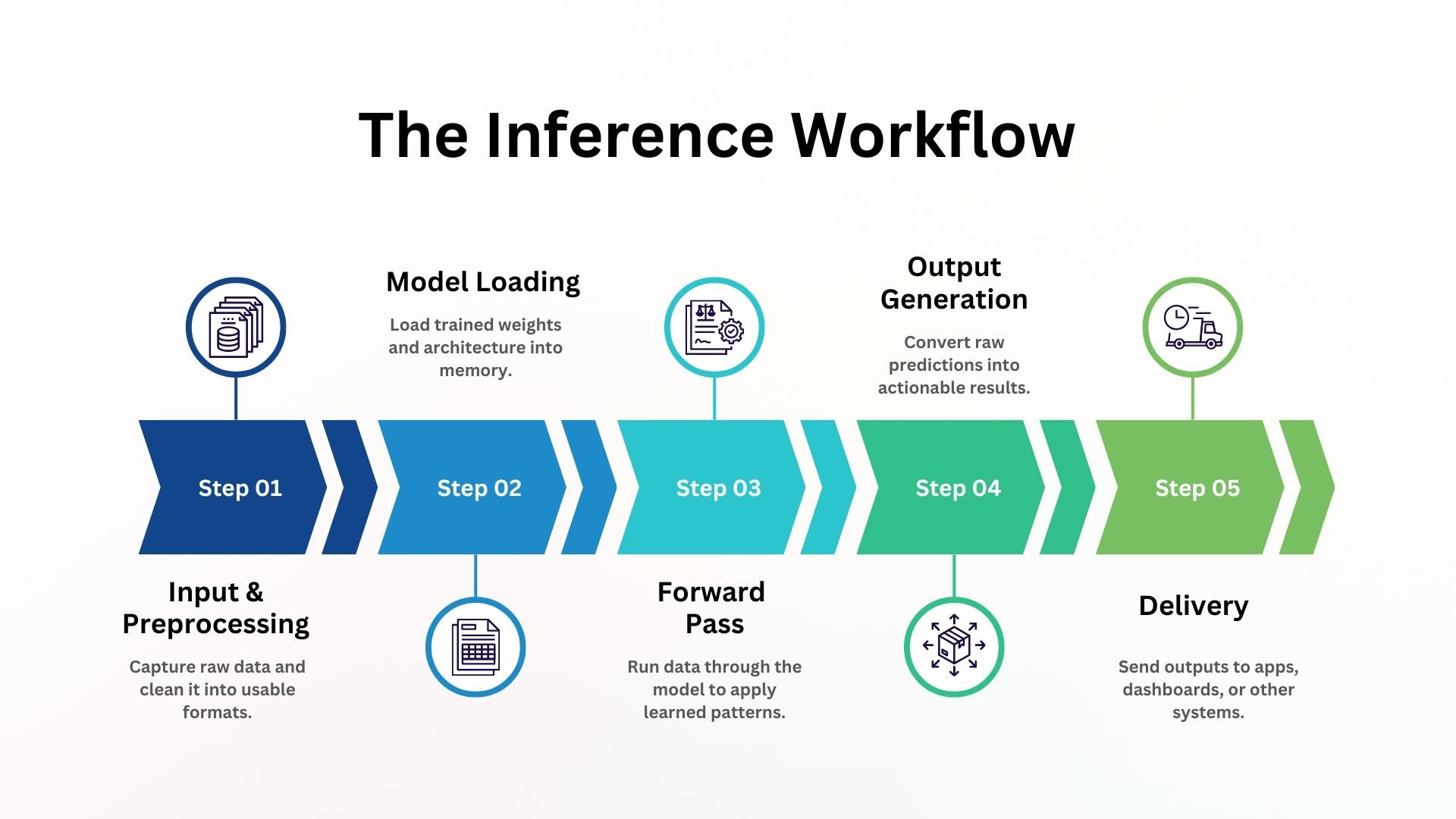 We can divide the process of inference into several steps. Understanding each part helps engineering teams balance performance, reliability, and cost.